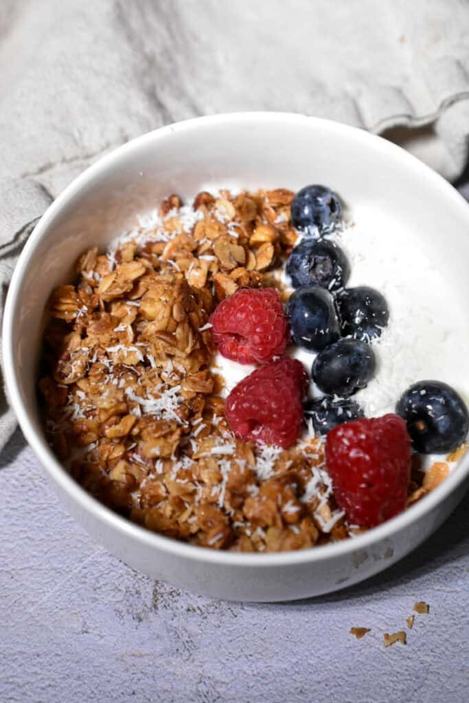 Store this maple granola in an airtight container at room temperature for up to 2 weeks (if it lasts that long!)