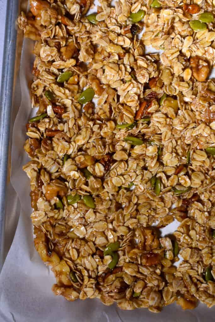 Let the granola cool completely before breaking it apart. I usually let mine sit for a few hours to ensure they firm up perfectly.