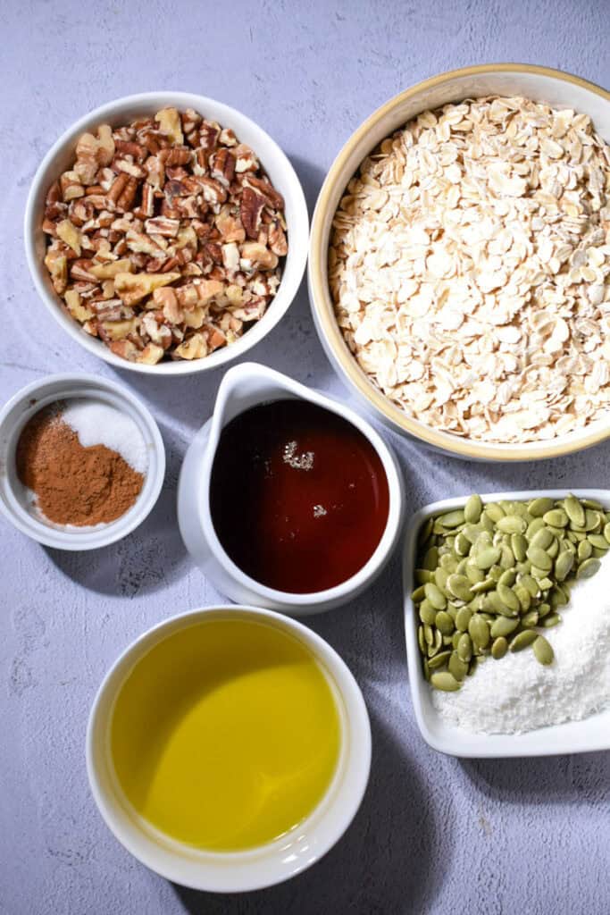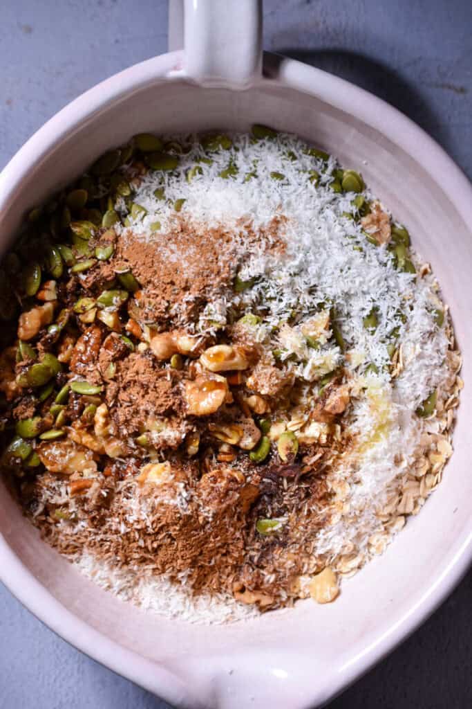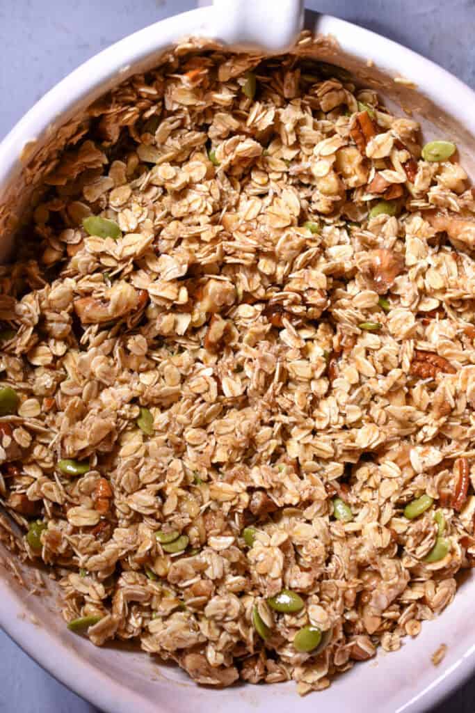 Seeds: For this pecan granola, I added pepitas, aka pumpkin seeds, to add a little bit more of that fall flavor and omegas,